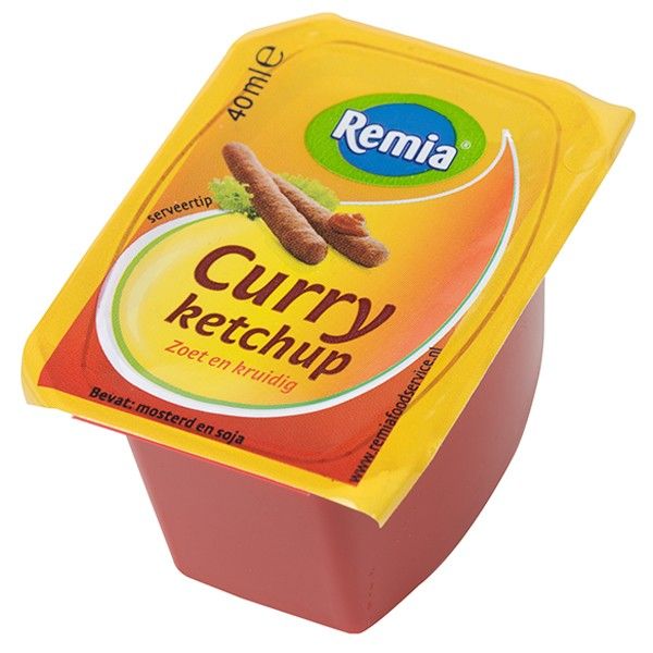 Een wit sesambroodje met 3 knapperige kipnuggets, frisse ijsbergsla en curry saus.