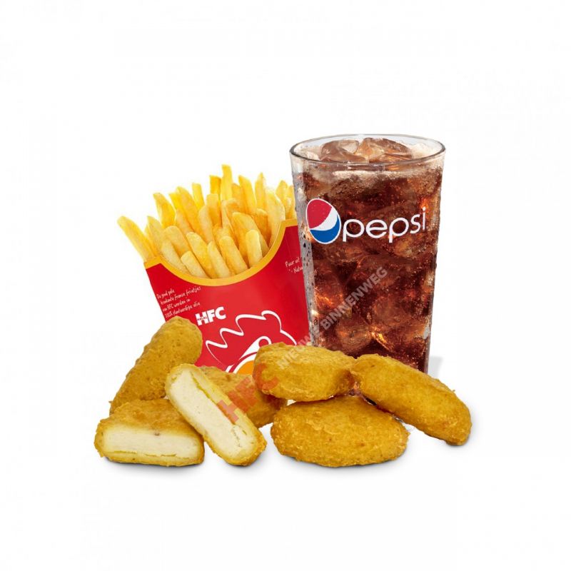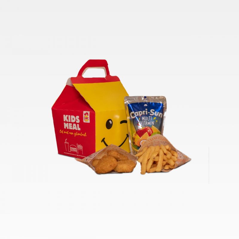 9 stukjes malse kip nuggets met een knapperig laagje. Inclusief portie franse frietjes en een ...