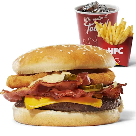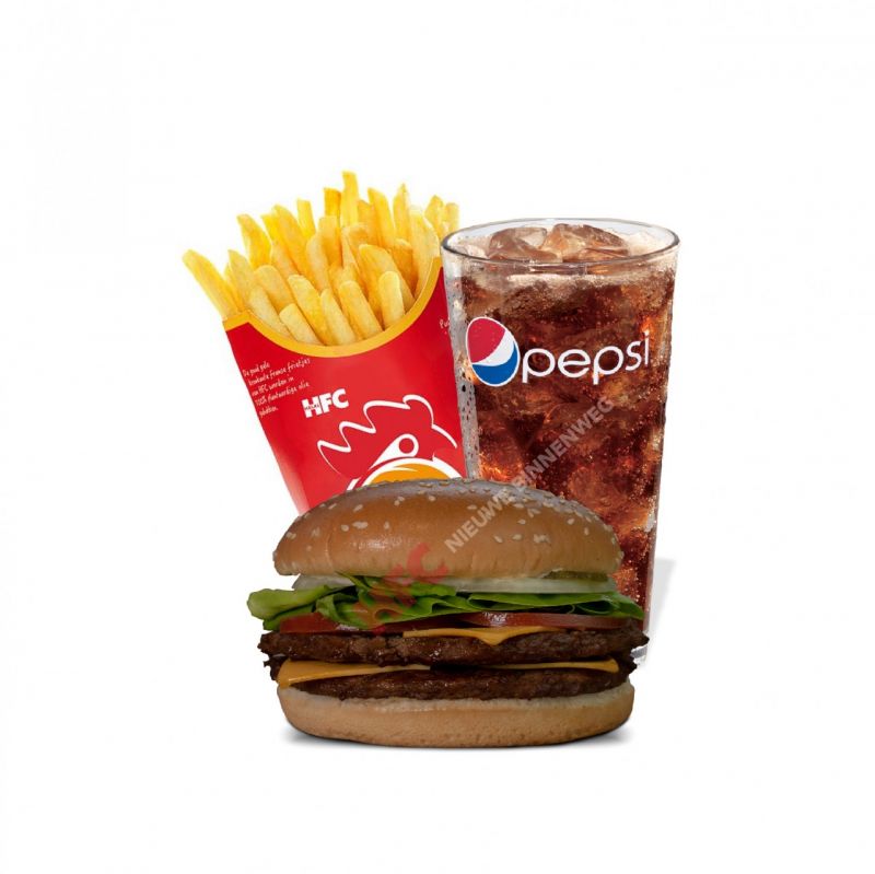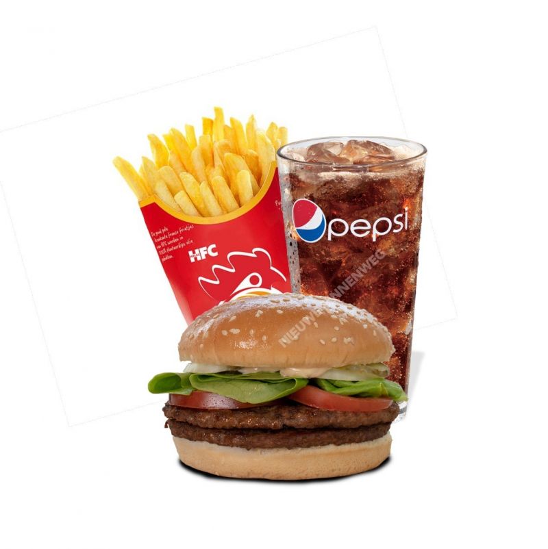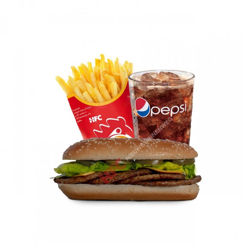 Rundvlees, verse uitjes, augurken, frisse ijsbergsla, verse tomaat, cheddar kaas en onze bekende burger dressing. ...