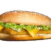 Een rond sesambroodje met echte Alaska Pollak lekkerbek filet, frisse ijsbergsla, cheddarkaas en als finishing ...
