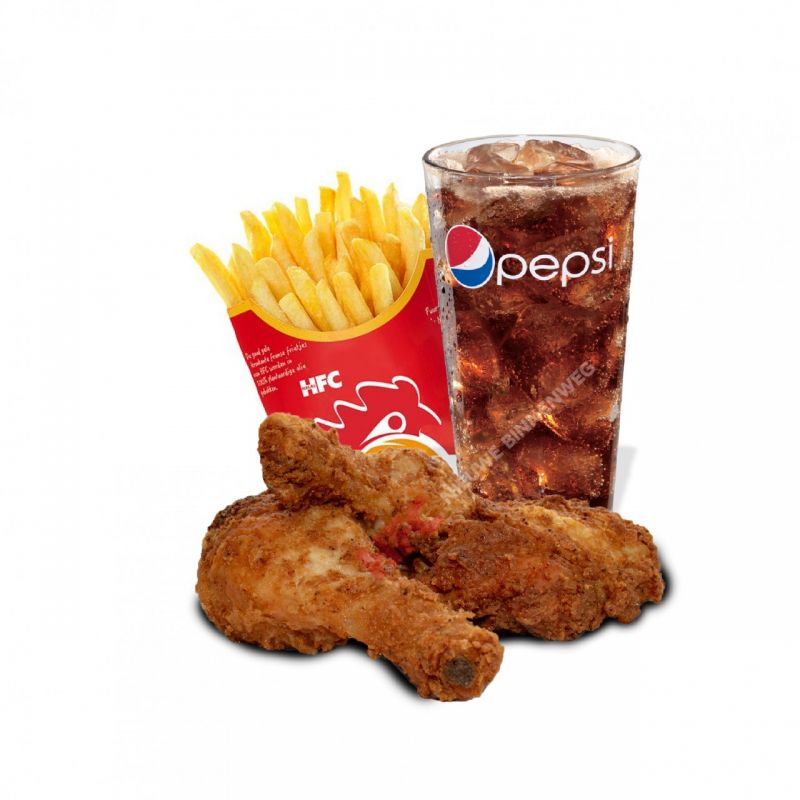 2 natural kip stukken. Inclusief een portie Franse frietjes en een frisdrank naar keuze.