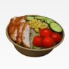 Grote salade met krokante warme kip, gemengde sla, komkommerschijfjes, cherry tomaatjes en mais inclusief dressing.