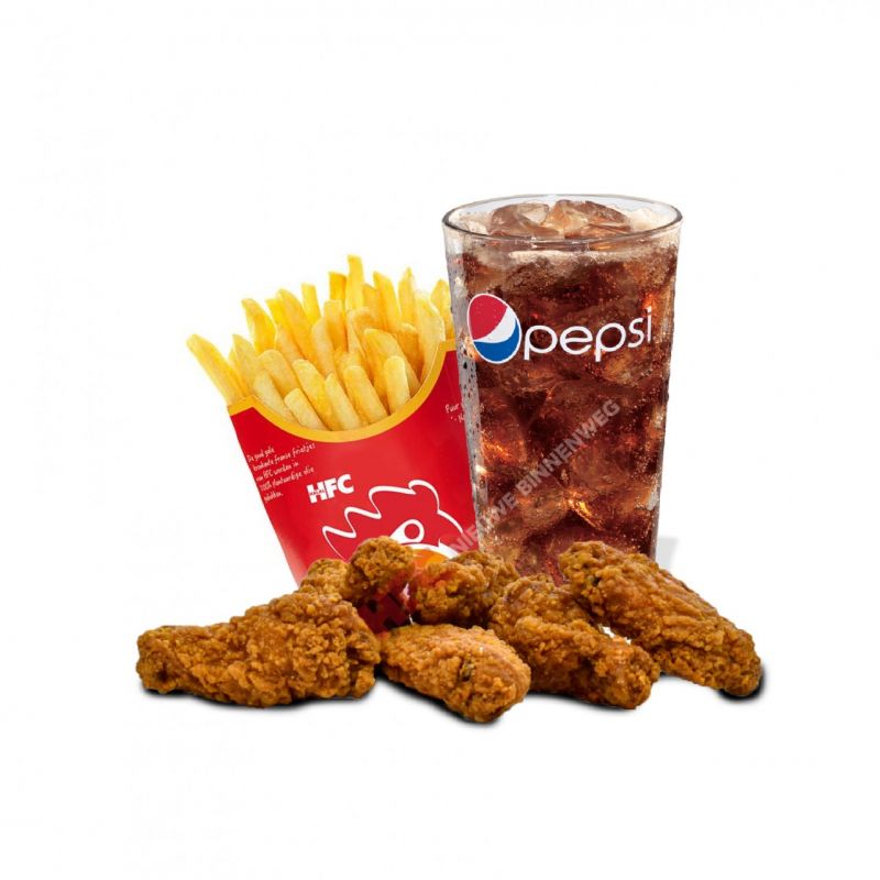 6 perfect gekruide krokante hot/spicy wings. Inclusieve een portie Franse frietjes en een frisdrank naar ...